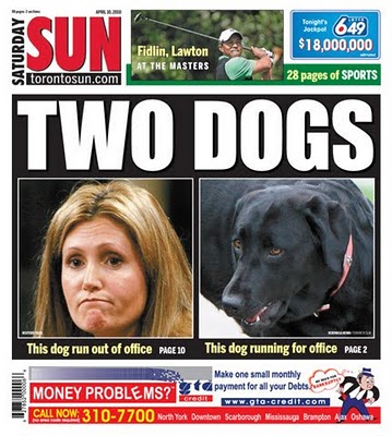 Before long, Harper’s ambitious agenda of blaming Liberal Senators for stalling his crime bills was sidetracked by the Helena Guergis and Rahim Jaffer show. And while this story had many thinking that Rahim Jaffer was the biggest asshole in Canada, the Toronto Sun headline writer quickly showed that he too wanted that title.