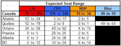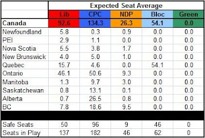 Yesterday, I gave an overview of the polling numbers – today, an updated seat projection.