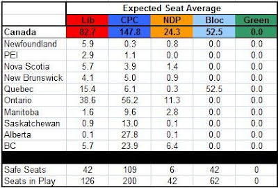 Since the last update, Harper’s largest gains have come in Ontario (up 6 seats on average) and BC (up 5 seats on average) – his support numbers have not shifted noticeably anywhere else in the country.
