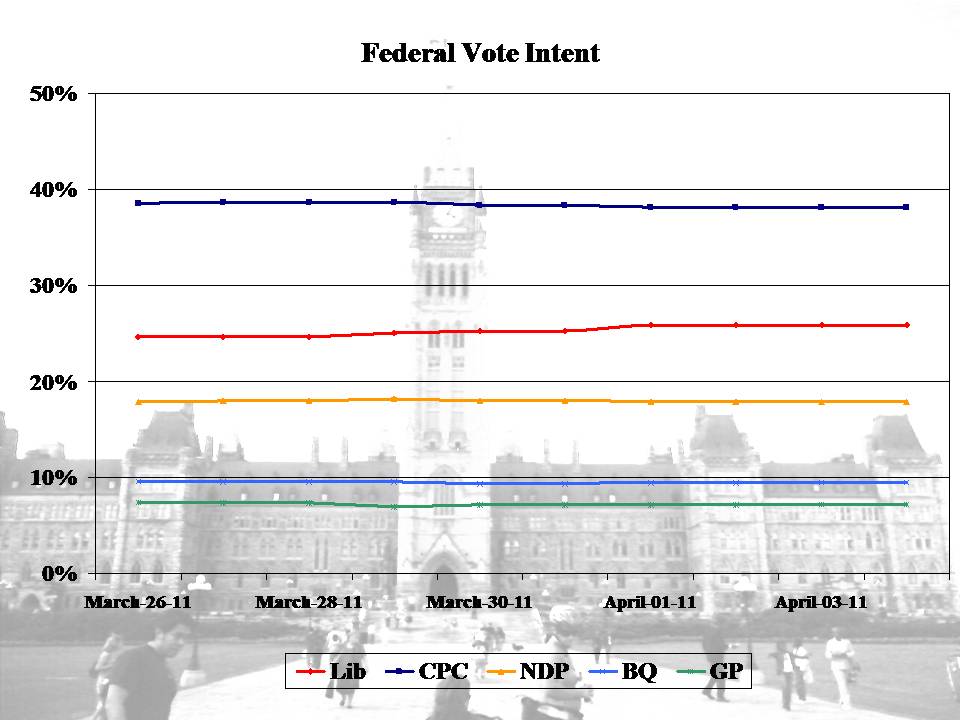 The model also takes by elections and incumbency into account. And unlike other models, it includes not only the 2008 election as the baseline, but some 2004 and 2006 election results, as well as a riding projection based on demographics. This helps “smooth” out anomalous results from the 2008 campaign, to ensure we don’t project the Greens winning Central Nova or anything like that.