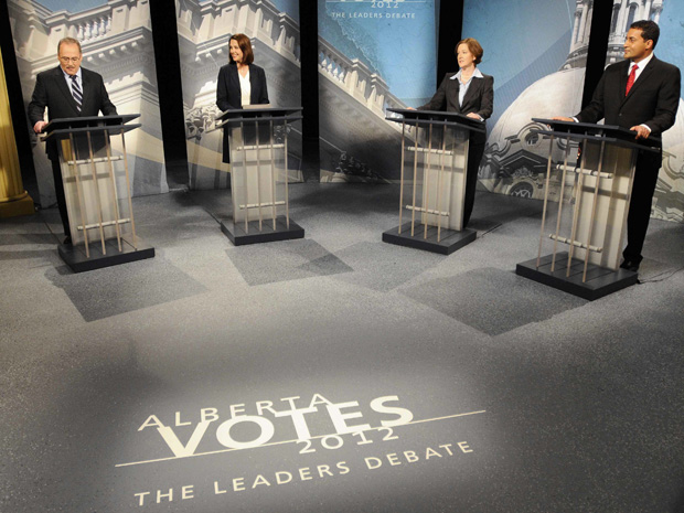 The hype machines were in overdrive for yesterday’s Alberta Leaders Debate, but the outcome was similar to most debates: steady but unspectacular performances from all the candidates, with the end result nothing more than re-enforcing existing attitudes. The post-debate Ipsos poll bears that out; when asked who won, 37% opted for Smith, 28% for Redford, 13% for Sherman, and 10% for Mason – similar to the party support levels in most recent polls.